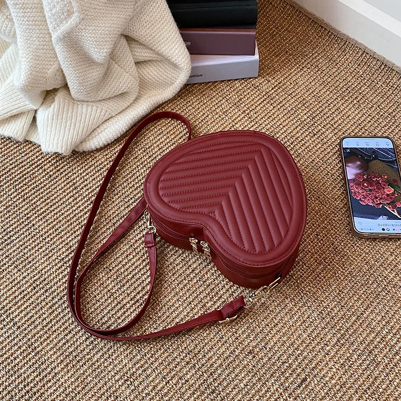 Winter New Niche Design Single Shoulder Diamond Peach Heart Bag Fashion High-end Texture Crossbody Women's Bag